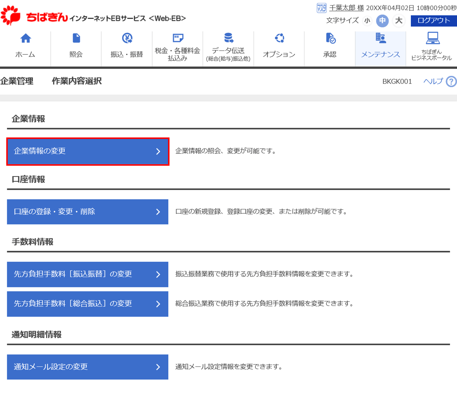 4.「企業情報の変更」をクリックしてください。