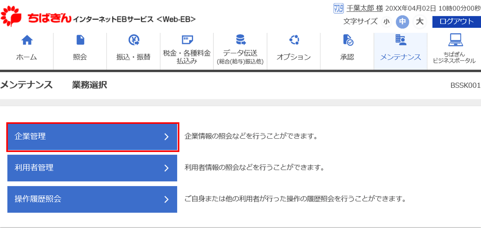 3.「企業管理」をクリックしてください。