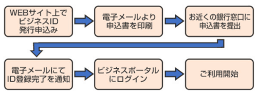 ※ 手続き完了には、1週間程度お時間をいただく場合がございます。 ※ ビジネスIDの申込は、原則として法人代表者さまにご操作をお願いいたします。