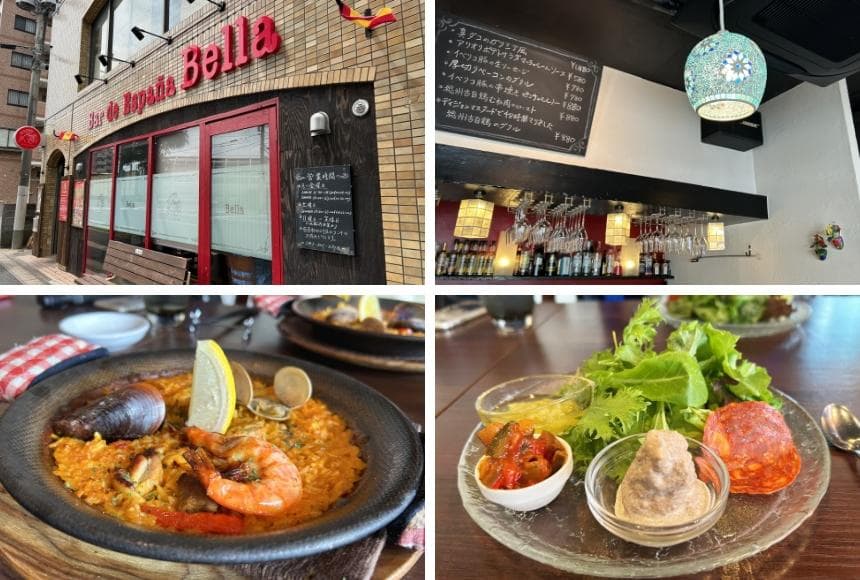 店内はランプや壁の装飾が美しく、まるでスペインに来たかのよう。ランチタイムに伺いましたが、夜はさらに幻想的な空間になるようです! 私は魚介とお肉のパエージャミスタ ランチをいただきました。 パエージャはパエリアのことで、サラダタパス付きです。 タパスは生野菜(レモンの手作りドレッシング付き)、チョリソー、ラタトゥイユ、アンチョビソースのマッシュポテトで、どれも本場の味!一口食べた瞬間に口角が緩んでしまいました。 タパスを食べ終わる頃に、アツアツのパエリアが到着。 乗っているエビはなんと殻ごと食べられて、信じられないほど柔らかく絶品。魚介のうま味を最大限に味わうことができ、一度食べたら忘れられないおいしさでした。 店名のBellaは「美しい」という意味があるそうです。 料理はもちろん、店内もスペインにいるような気分を味わえる、素敵な空間でした。 「スペインバル ベジャ(Bella)」 千葉県千葉市花見川区幕張本郷1-14-7 1F 〇営業時間: [月~金] ランチ 11:30~14:30 L.O. 14:00 ディナー 18:00~23:00 L.O. 22:00 [土] ディナー 17:00~23:00 L.O. 22:00 ※営業時間や閉店時間は日によって異なる場合あり ※臨時休業あり ※詳しくは公式HPにて確認 〇定休日:毎週日曜日 ※月曜日が祝日の場合、日曜日は営業 〇交通 JR中央・総武線 幕張本郷駅より徒歩6分 京成千葉線 京成幕張本郷駅より徒歩5分