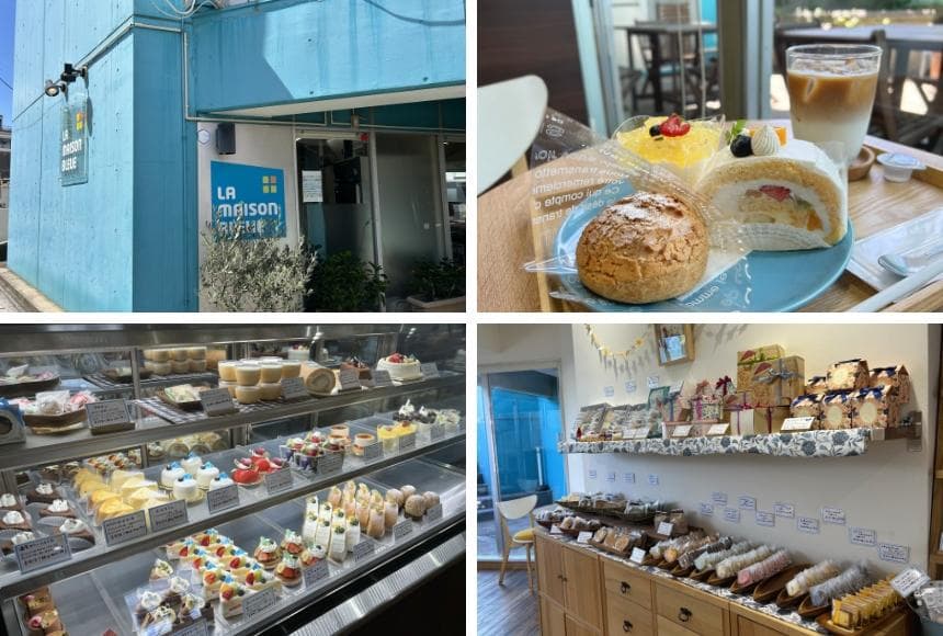 ここで、公民館や市民センターに行く途中にあったケーキ屋に伺いました。 幕張本郷駅から徒歩4分ほどのところにある「ラ メゾンブルー(LA MAISON BLEUE)」というお店ですが、店名の通り、鮮やかな水色の外観が目を引きます。