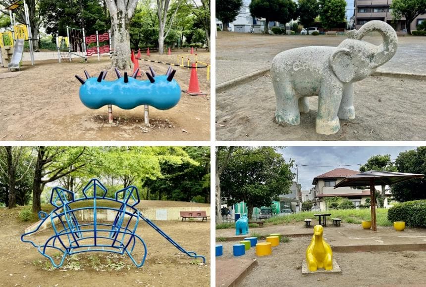 幕張本郷周辺の公園を探索していると、動物や不思議な生物のオブジェがたくさんありました。 ところで、皆さんは写真左側のオブジェは何だと思いますか? 私の予想は上からイモムシ、ハリネズミです。 ちなみに、動物のなかでもゾウが多めに見受けられましたよ! 幕張本郷駅を訪れた際は、ぜひ公園にあるオブジェを探してみてくださいね。