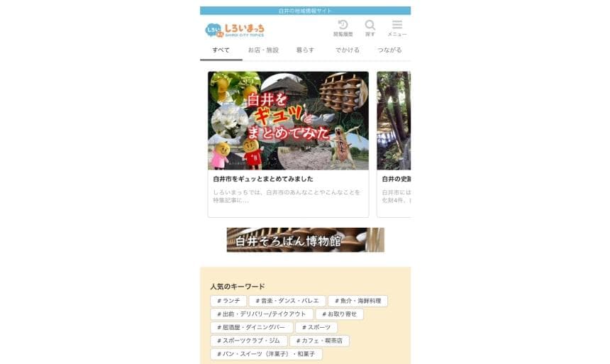 ③白井の地域情報サイト『しろいまっち』 『しろいまっち』は白井市とまいぷれが運営する白井市の魅力を発信するための地域情報サイトです。 地元飲食店などのお店情報、カレンダーでわかる地元イベント情報・習い事情報や白井市内&近隣の公園一覧などが掲載されており、子育て世代にとって大変有益な情報が詰まっています。 また、サイト内で市内イベントやサークルの告知・地域情報の投稿なども出来る仕組みとなっており、閲覧するだけでなく誰でも発信者になれるプラットフォームになっています。 皆さんも、自分だけが知っている地元の魅力を発信して、白井市を盛り上げてください。