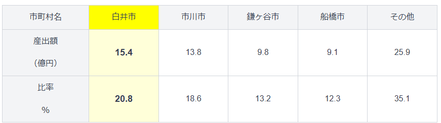※白井市の梨産出額は、ふなっしーで有名な船橋市の産出額の約1.7倍あります。