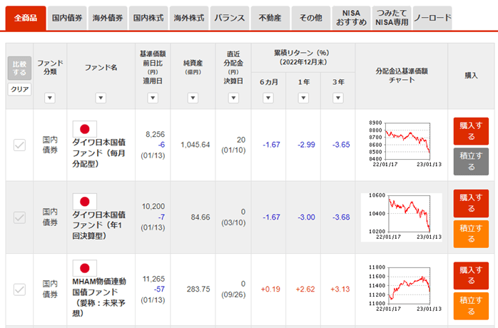 銘柄によっては、表記されている基準価額未満でも少額購入が可能
