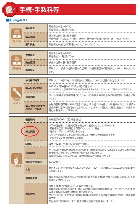 純資産総額があまりに少ないと償還(繰上償還)の可能性が出てくるので注意