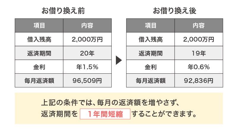 「返済期間の短縮」や「ボーナス返済をなくす」といった返済条件の変更も可能です。(一般的に返済期間の延長はできません。)