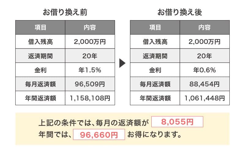 ・数十万円の諸費用がかかる(借り入れに含めることで持ち出しは不要) ・審査や契約、給振や引き落とし口座の変更など手間がかかる どのメリットをどれくらい重視するかは人それぞれの考えによりますが、ぜひ金額的なメリットだけに囚われず、金額以外のメリットも考慮したうえで、借り換えをするかどうか判断してみてください。