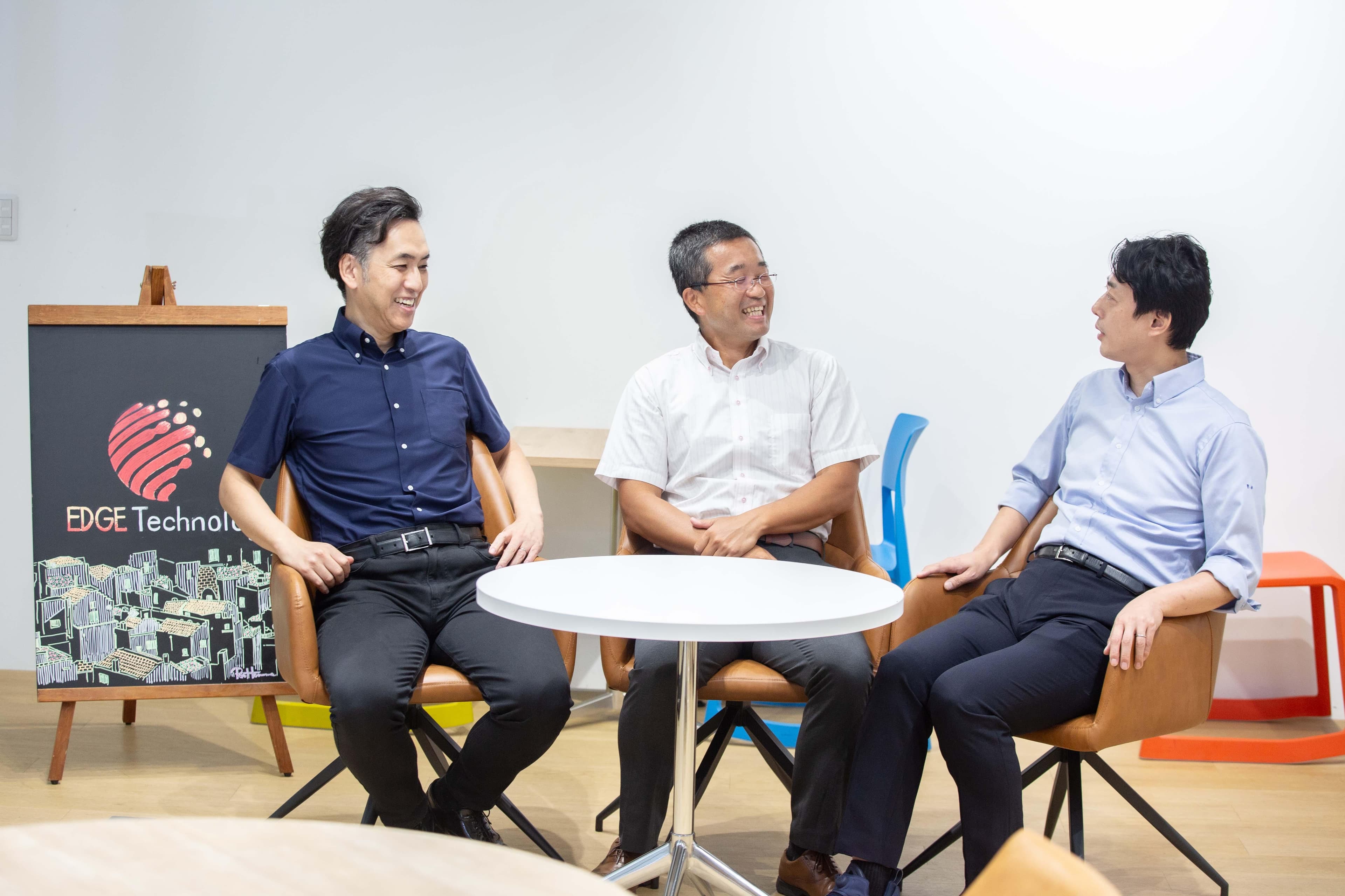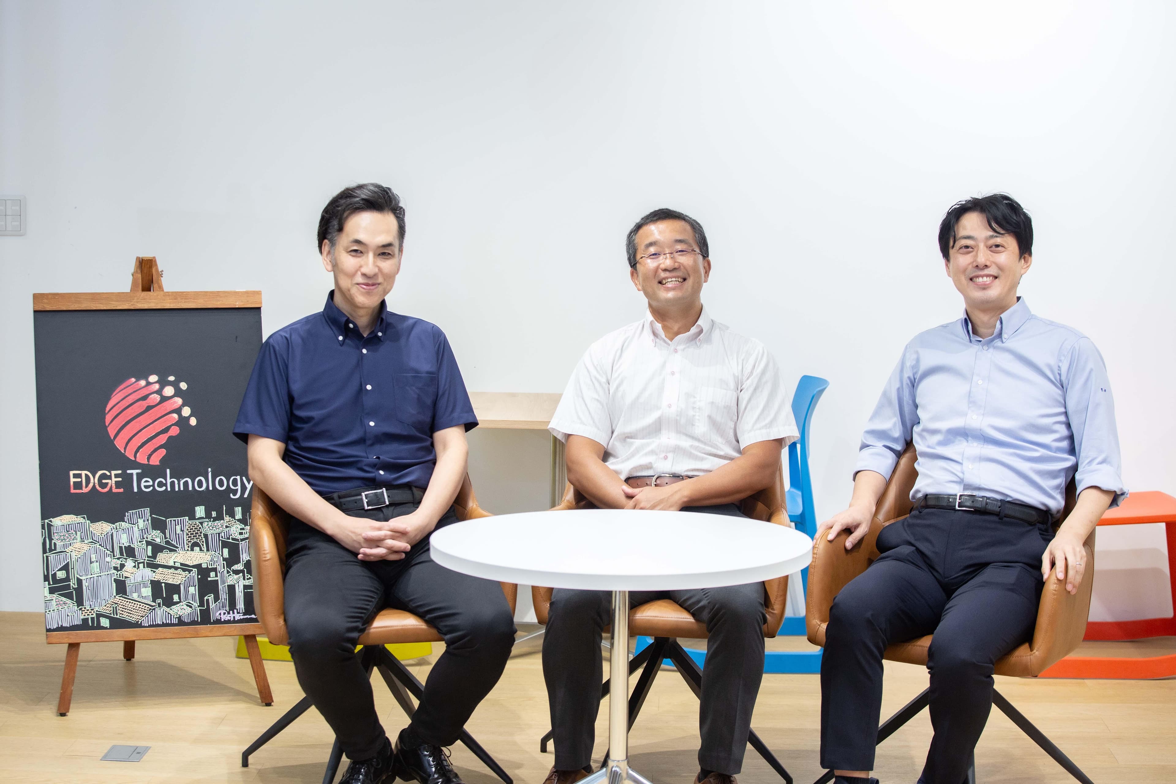 右からエッジテクノロジー株式会社 島田代表取締役社長、杉山技術顧問、坂西取締役
