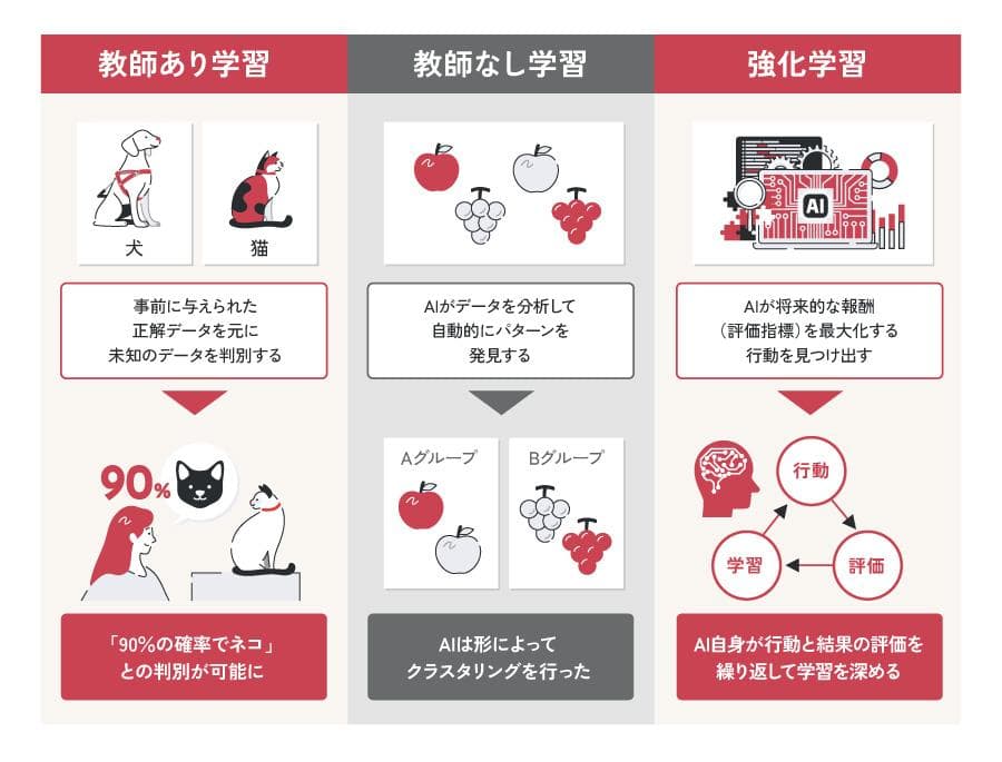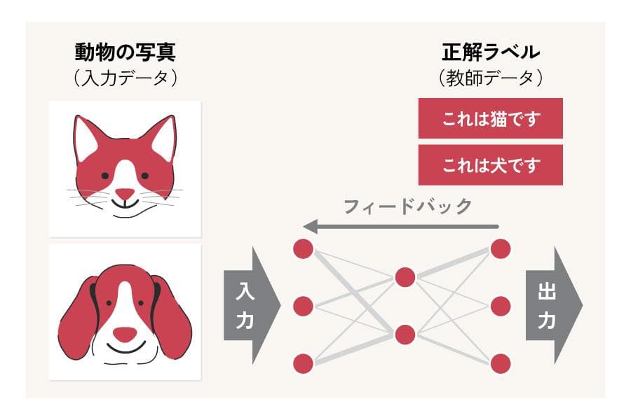 AIの代表的な学習方法の一つである「教師付き学習」のイメージ