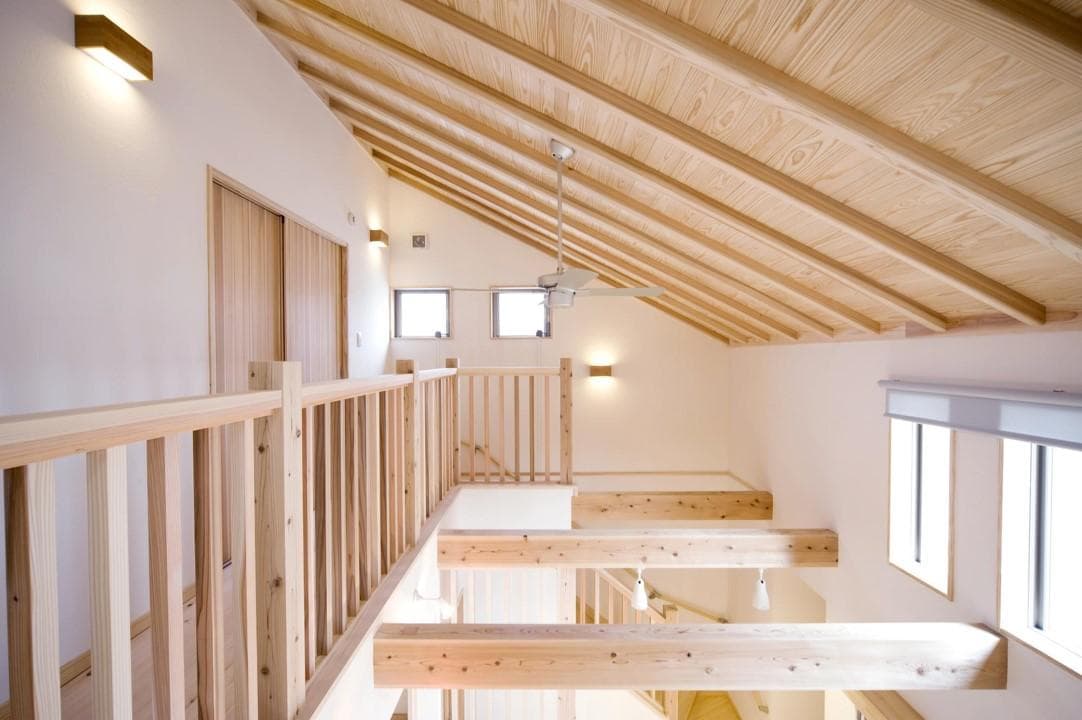 理想通りの家が完成したので、満足感がありますね。妻や子どもたちもすごく喜んでくれているし、本当に建ててよかったです。 特に、玄関のカバードポーチ(外に張り出した屋根付きのスペース)が気に入っています。念願の『バック・トゥ・ザ・フューチャー』みたいな雰囲気があるんですよ。あとは家の中だと、リビングの天井の高さや勾配を工夫してもらったので、かなり開放的な空間が実現できたのもポイントです。
