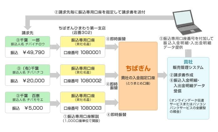 - 1.振込専用口座(1,000口座単位)を開設していただきます。