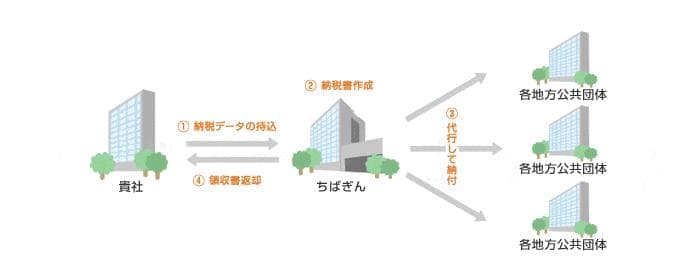 貴社の社員さまの給与から天引きした特別徴収の住民税納付明細を、インターネットや貴社のパソコンやEB専用端末機等から、ちばぎんへ送信していただくことにより、ちばぎんが貴社に代わって納付手続きを行うサービスです。