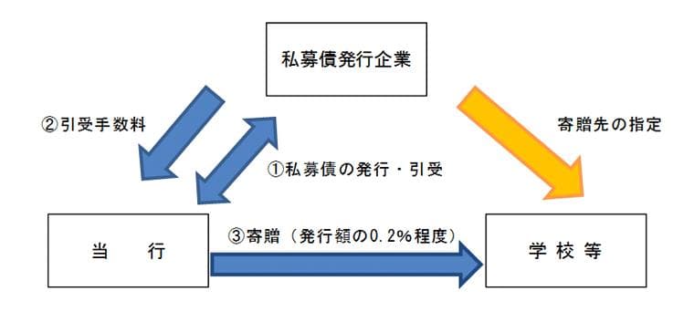 引受手数料の一部で物品を購入し、発行企業が指定する学校等に寄贈します。