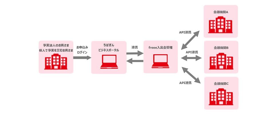 - ●ちばぎんビジネスポータルを通じて、千葉銀行と、千葉銀行以外の金融機関の口座残高・入出金明細をまとめて確認できます。