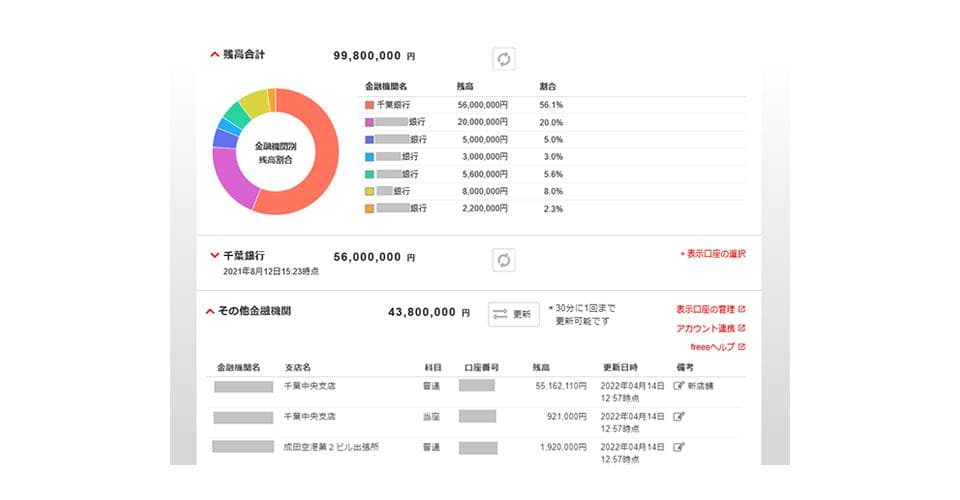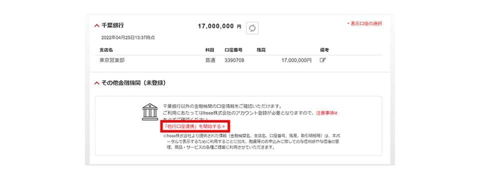 連携が完了すると、選択した口座の情報が画面上に表示されます。