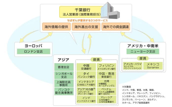 - ●提携銀行による現地での融資、送金、外国為替などの各種金融サービス