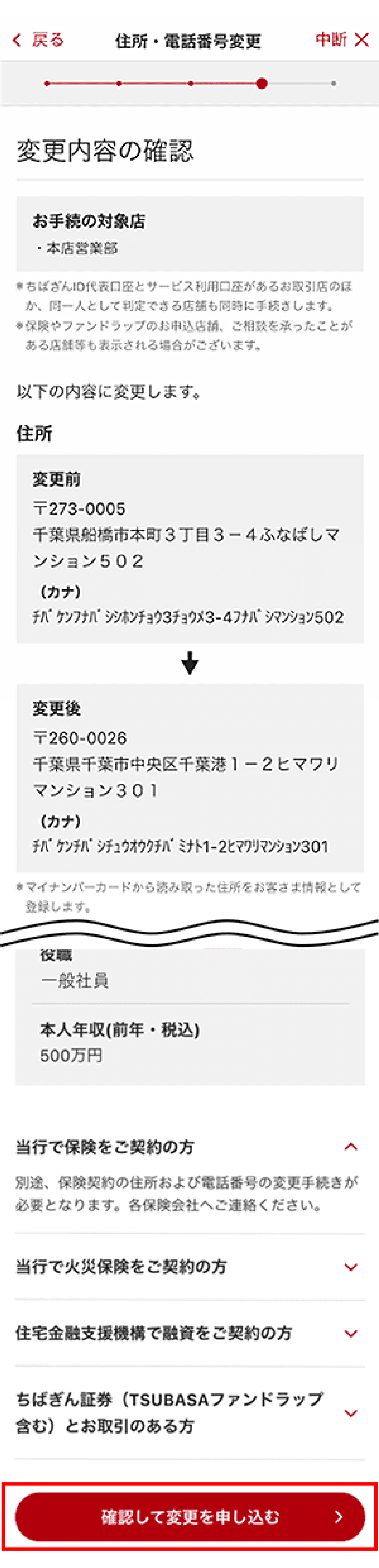 ※ちばぎんID代表口座とサービス利用口座があるお取引店のほか、同一人として判定できる店舗の口座も同時に手続きします。 ※15歳未満の方やマイナンバーカードの氏名が銀行の届出氏名と異なる方は本機能をご利用いただけません。 ※お取引内容や口座の状態により本機能をご利用いただけない場合があります。 ※変更内容の確認を行うため、変更が反映されるまでは数日お時間がかかります。お急ぎの場合は窓口でお手続きください。また、確認の結果はメールでお知らせします。
