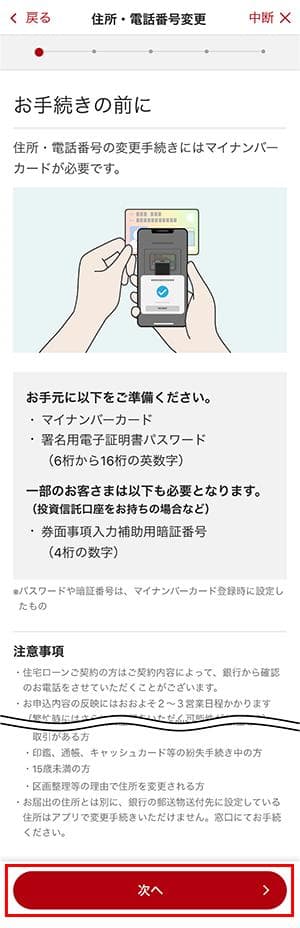 マイナンバーカードの公的個人認証を利用して住所や電話番号の変更ができます。