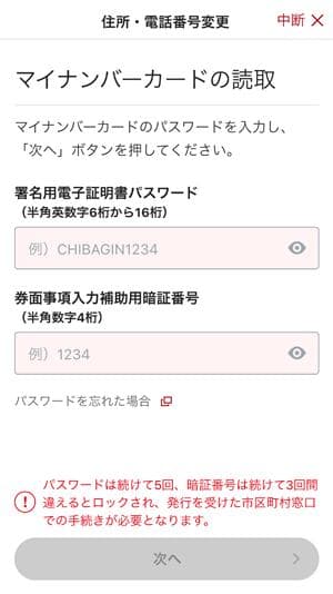 ※パスワードや暗証番号は、マイナンバーカード登録時に設定したもの
