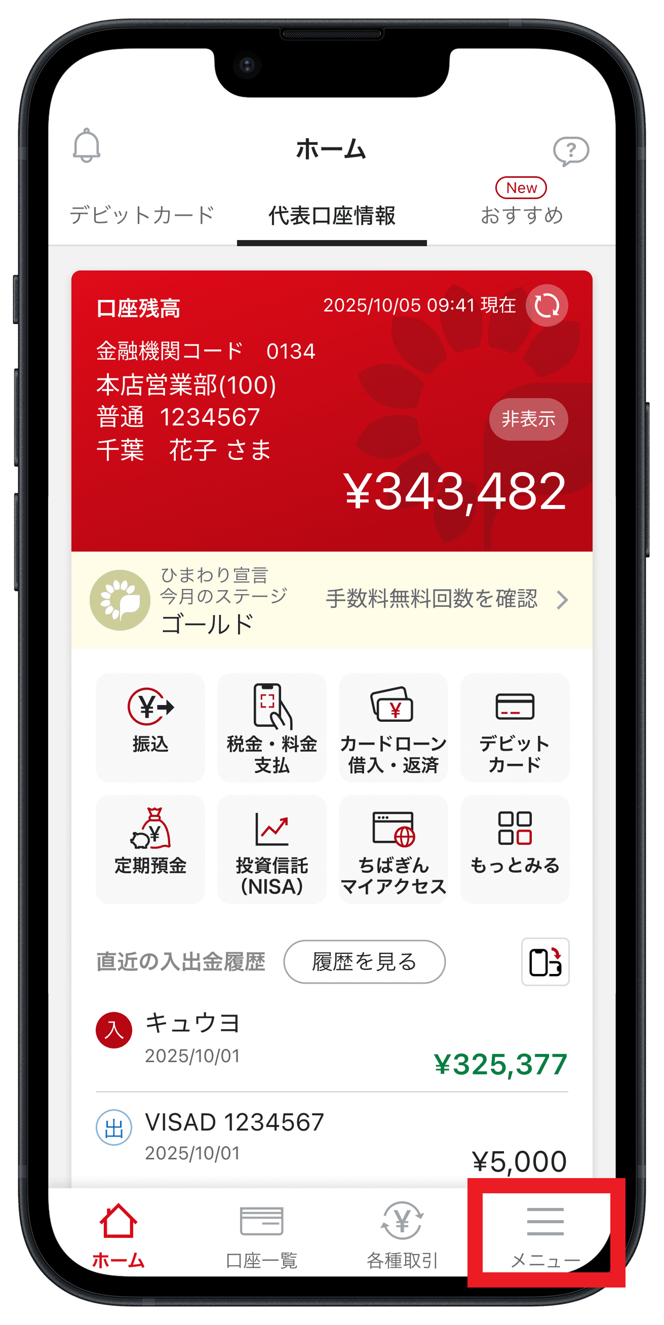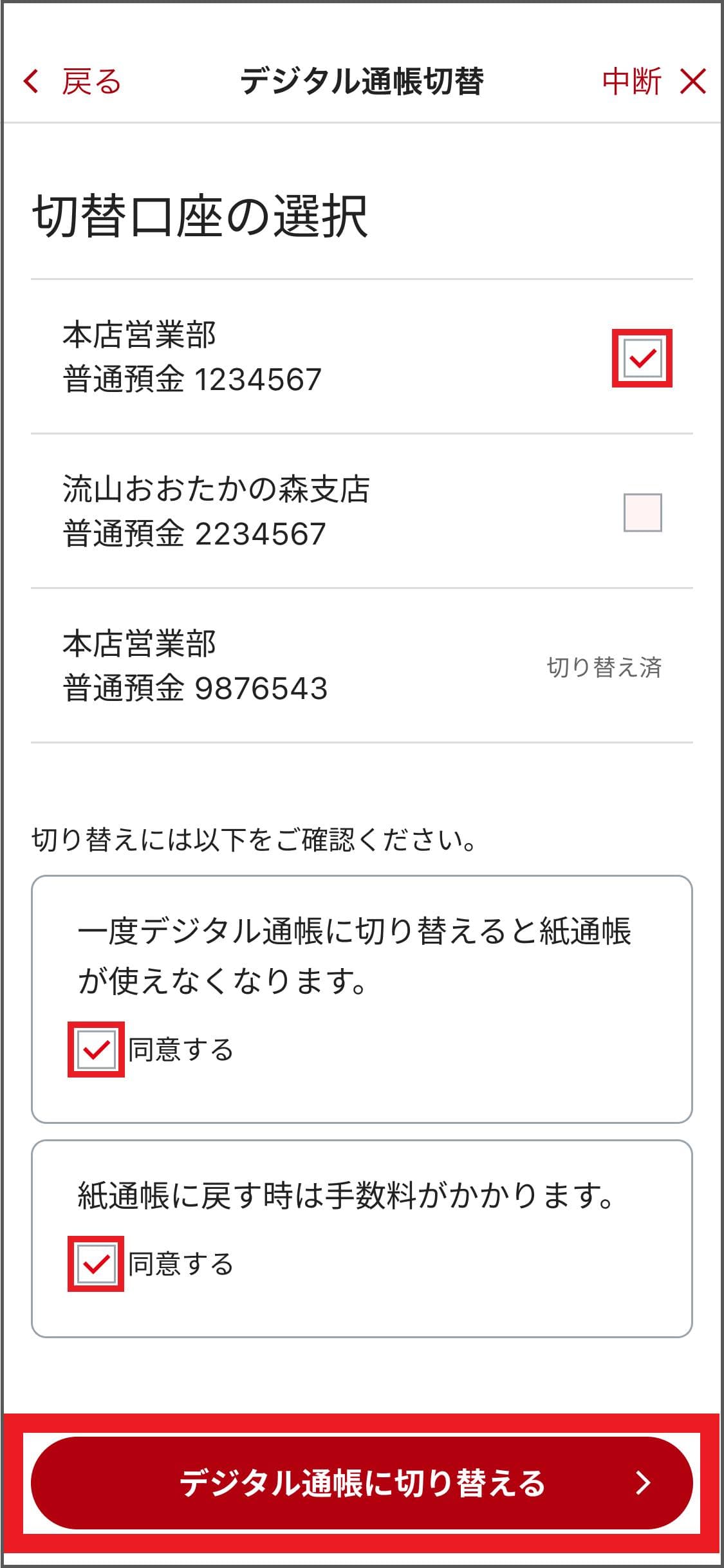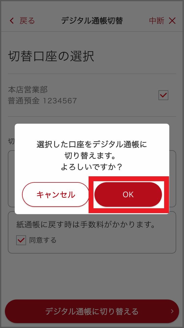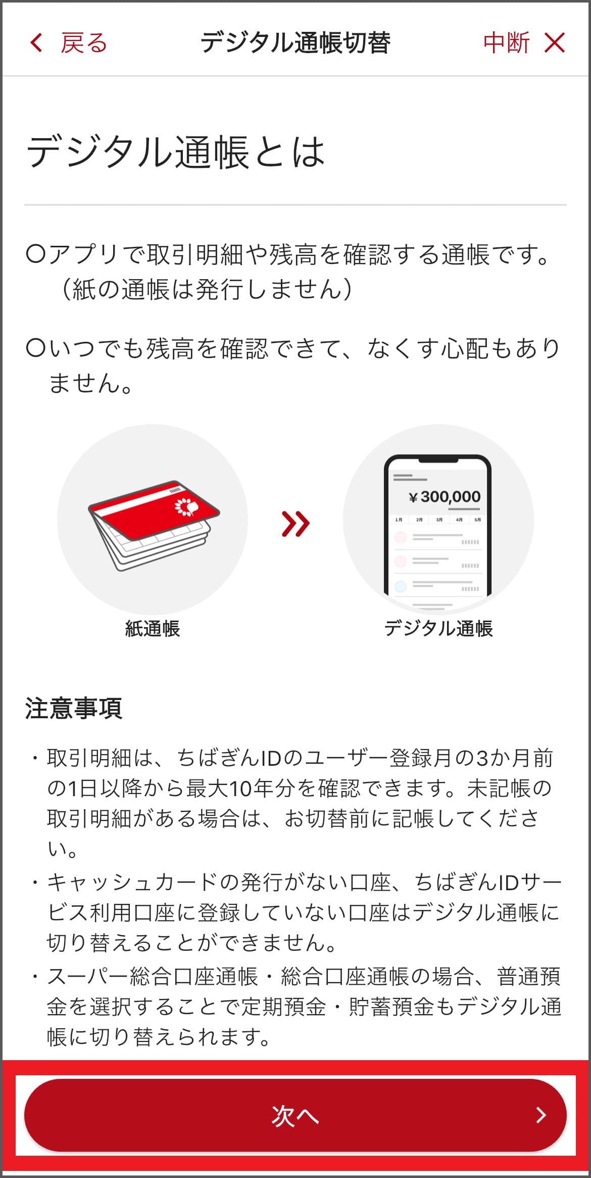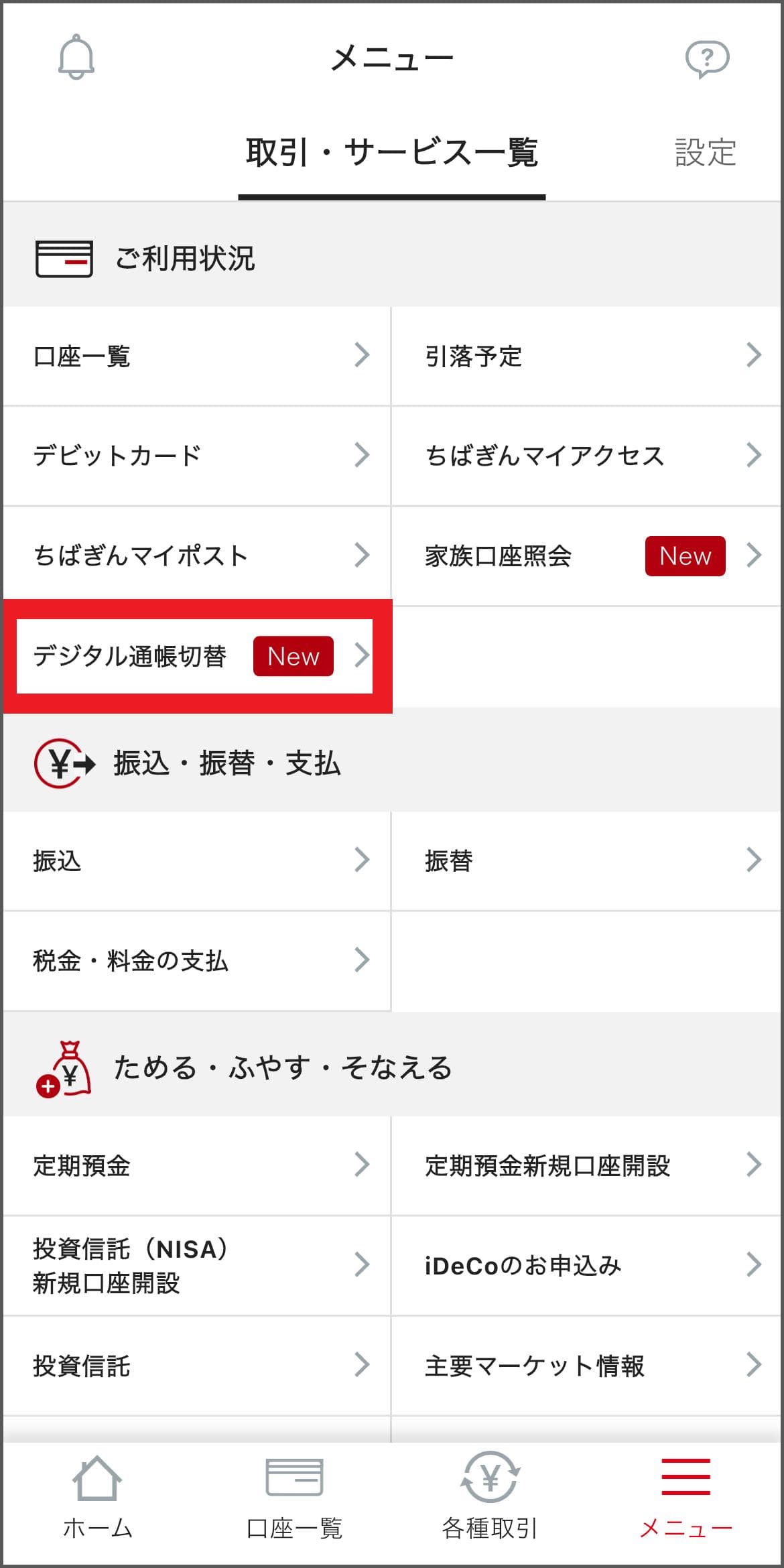 ちばぎんアプリ デジタル通帳切替の操作方法