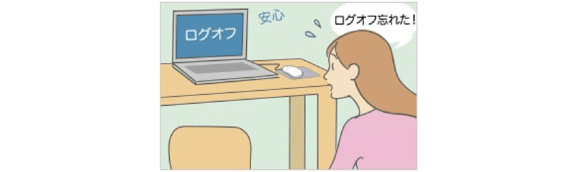 インターネットバンキングでログインされた後、一定時間操作がない場合、自動的にログオフし、第三者の不正利用を防ぐことができます。