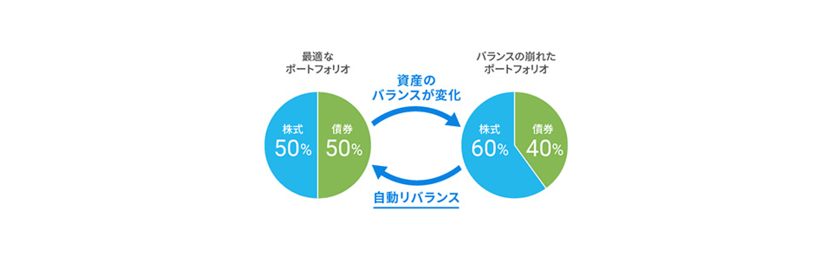 資産のバランスが崩れないよう、自動で調整(リバランス)します。積立などで資産を新たに購入する際、賢く買って最適な状態に近づけます。