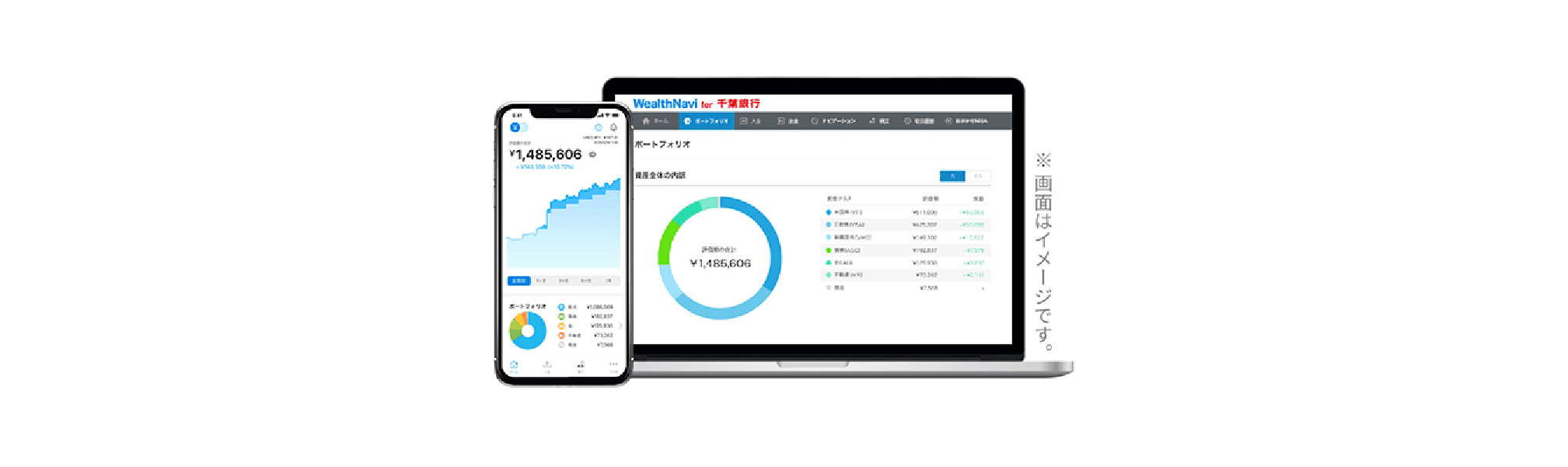 「WealthNavi for 千葉銀行」をお申し込みの際は、次の点にご注意ください。 ・「WealthNavi for 千葉銀行」はウェルスナビ株式会社が株式会社千葉銀行(以下、千葉銀行)のお客さま向けに提供するサービスです。千葉銀行が提供するサービスではありません。 ・「WealthNavi for 千葉銀行」は、元本が保証された商品ではありません。 ・「WealthNavi for 千葉銀行」のお取引に際しては手数料がかかります。費用・リスクの詳細については、ウェルスナビ株式会社の契約締結前交付書面等をご覧ください。 ・千葉銀行はウェルスナビ株式会社とは別法人であり、「WealthNavi for 千葉銀行」のご利用にあたっては、ウェルスナビ株式会社のお取引口座の開設が必要です(「WealthNavi for 千葉銀行」の口座開設をお申し込みいただくと、お取引口座がウェルスナビ株式会社に開設されます)。 ・千葉銀行は、ウェルスナビ株式会社から委託を受け、お客さまとウェルスナビ株式会社との間で締結する投資一任契約の締結の媒介および投資一任契約に基づく取引のために必要な口座開設の媒介をおこないます。資産の管理・運用はウェルスナビ株式会社がおこないます。 ・「WealthNavi for 千葉銀行」において口座を開設した後のお取引については、すべてお客さまとウェルスナビ株式会社とのお取引になります。 ・千葉銀行において「WealthNavi for 千葉銀行」のお取引をされるか否かが、お客さまと千葉銀行の預金、融資等他のお取引に影響を与えることはありません。また、千葉銀行での預金、融資等のお取引内容が「WealthNavi for 千葉銀行」のお取引に影響を与えることはありません。 ・「WealthNavi for 千葉銀行」におけるお取引はウェルスナビ株式会社とお客さまとの投資一任契約に基づくものであるため、原則として、お客さまが自ら有価証券の個別の売買注文をおこなうことはできません。 ・原則として、成年の個人のお客さまを対象とさせていただきます。 ・千葉銀行の本支店窓口では、「WealthNavi for 千葉銀行」をお申し込みになれません。 ・「WealthNavi for 千葉銀行」のお申し込みには、千葉銀行の普通預金口座が必要です。すでに直接または他社経由にて、ウェルスナビ株式会社と投資一任契約を締結されている方は「WealthNavi for 千葉銀行」をお申し込みになれません。 ・「WealthNavi for 千葉銀行」は預金保険の対象ではありません。ウェルスナビ株式会社は、法令に従い、お客さまの資産とウェルスナビ株式会社の資産を明確に区別する分別管理をおこなっております。ウェルスナビ株式会社の破たんの場合でも、お客さまの資産は全額返還されます。また、万一分別管理に不備があった場合でも、返還できないお客さまの資産について日本投資者保護基金が1,000万円まで補償をおこないます。詳しくはウェルスナビ株式会社までお問い合わせください。 ・「WealthNavi for 千葉銀行」は、次の要因により預かり資産が変動し、お受け取り金額が投資元本を下回ることがあります。 ・相場変動リスク お客さまが所有するポートフォリオを構成する国内および海外ETFは、主として株式、債券、コモディティ等を実質的な投資対象とするため、その価格はこれら実質的な投資対象の価格などに応じて大きく変動し、その結果として損失が生じ、また、投資元本を割り込む場合があります。 ・為替変動リスク お客さまが所有するポートフォリオを構成する海外ETFに関しては、通貨発行国の金利の変化等により生じる外国為替相場の変動を原因とした損失が生じ、また、投資元本を割り込む場合があります。 ・信用リスク お客さまが所有するポートフォリオを構成する国内および海外ETFが、株式、債券等を実質的な投資対象としている場合、株式や債券等の発行者などの信用状況に変化が生じた場合、当該投資対象の市場価格の変動によって損失が生じ、また、投資元本を割り込む場合があります。 ・その他のリスク 取引所金融商品取引および外国金融商品取引所取引(国内および海外ETF)は、市場で取引がおこなわれるものの、市場環境の変更等により取引に支障をきたし、換金できないリスクがあります(流動性リスク)。取引するETFの対象国が休日等の場合、そのETFにかかわる取引がおこなわれないことがあります。 ・ウェルスナビ株式会社が提供する一連のサービスによりお客さまからもらい受ける手数料は、預かり資産額に対し最大1%(現金部分を除く、年率・税込1.1%)です(年365日として計算します)。預かり資産の日々の時価評価額に対し所定の年率により手数料額を日々計算し、原則として所定の方法により月初から月末(ただし、お客さまと締結した投資一任契約が終了した場合には当該終了日)までの期間ごとに合計のうえ、月間の手数料額として翌月第一営業日にお支払いいただきます。手数料額は日々の時価評価に応じ計算され計算期間中累計されるため、事前に金額または上限額を表示することができません。また、海外ETFの取引に際しては、ウェルス
