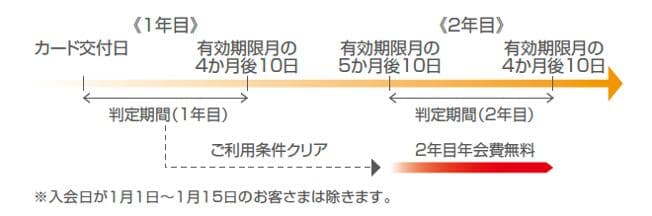 以下の条件のいずれかを満たす場合、2年目以降の年会費が無料となります。