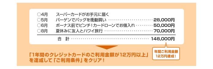 クレジットカードの年間ご利用金額の合計が12万円以上
