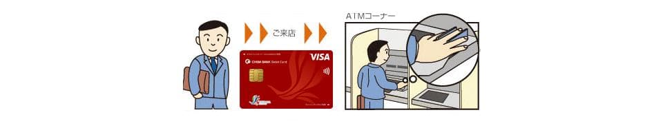 ※一部金融機関の「IC対応ATM」では、ICキャッシュカードとしてご利用いただけない場合があります。 ※画像はTSUBASAちばぎんVisaデビットカードです。
