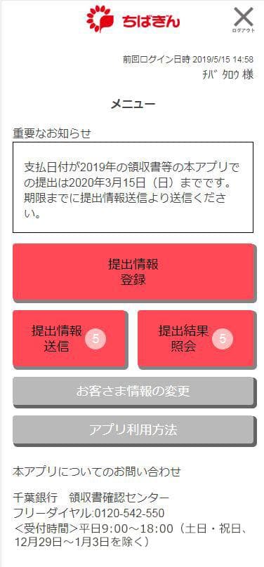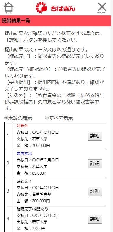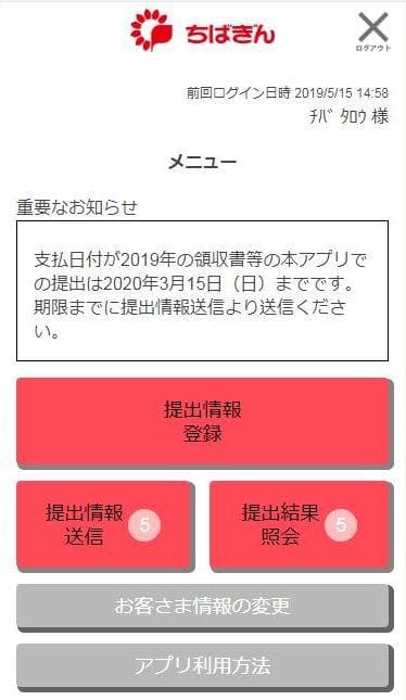- ・郵送にてご提出いただいた領収書等の情報は、アプリには反映されません。