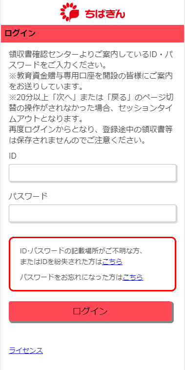 - ・20分以上「次へ」、「戻る」等のページ切替がなかった場合、セッションタイムアウトとなり再度ログインから操作いただくことになります。それまでにご入力されていた情報は保存されません。