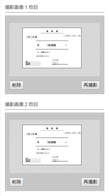 - ・アプリ上で撮影した領収書等の画像は、スマートフォン上に保存されることはありません。また、スマートフォンのアルバム等から、あらかじめ撮影した画像を選択することもできません。