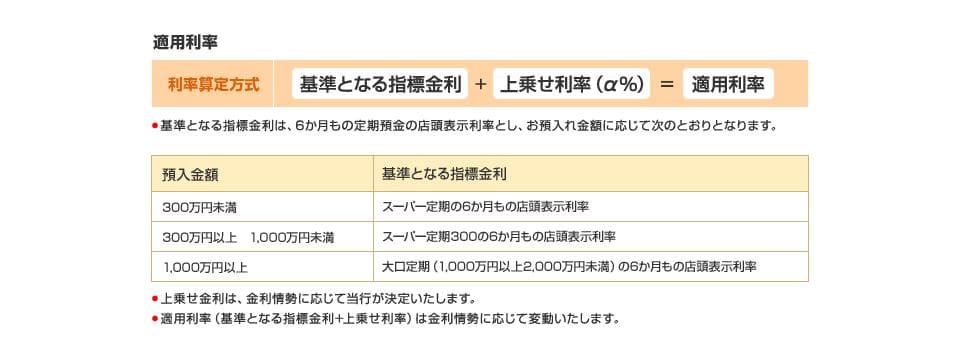 金融情勢にあわせて金利が変動します。お預け入れ日から6カ月毎に適用利率を見直します。