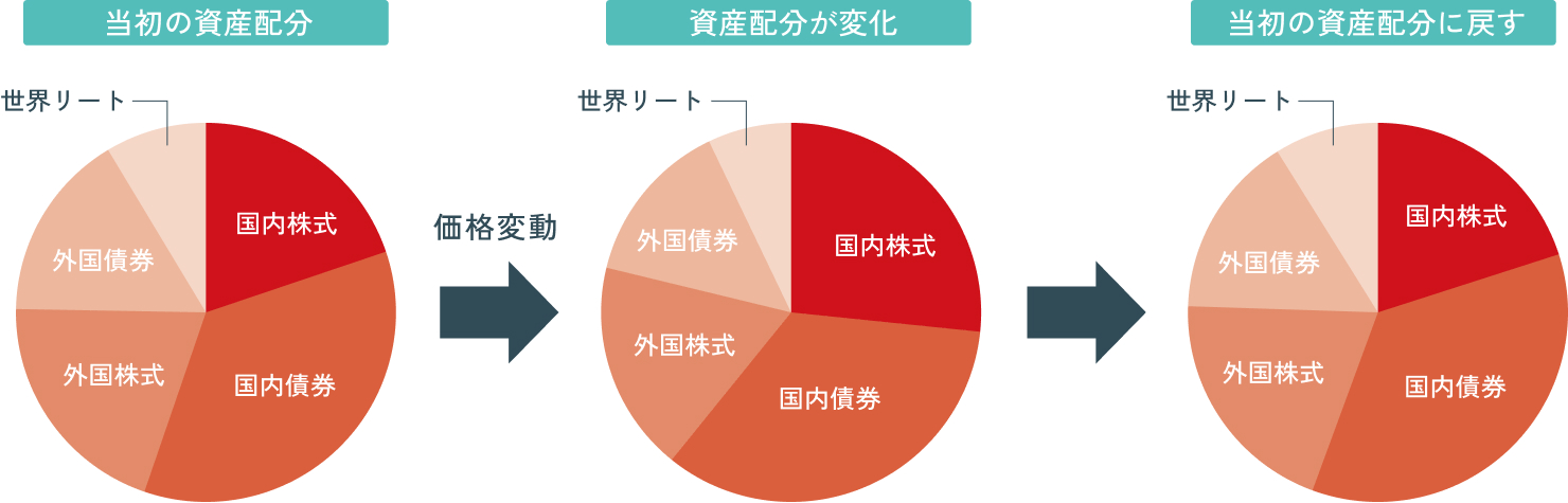 - 元の形に資産配分を戻したり、ご運用のご意向に基づき現在保有中の投資信託の持ち方を見直すことをいいます。
