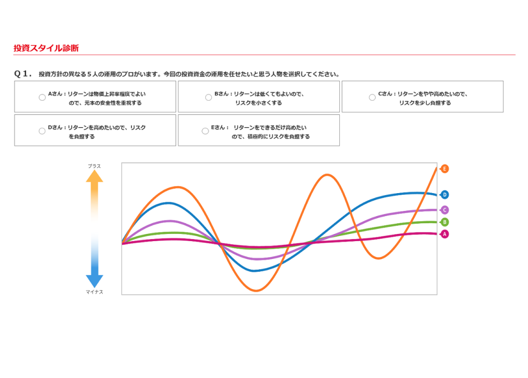 ● 提示される運用コース・銘柄は当行が必ずしも推奨するものではなく、最終的な運用コース・銘柄はお客さまのご意向によりお決めください。