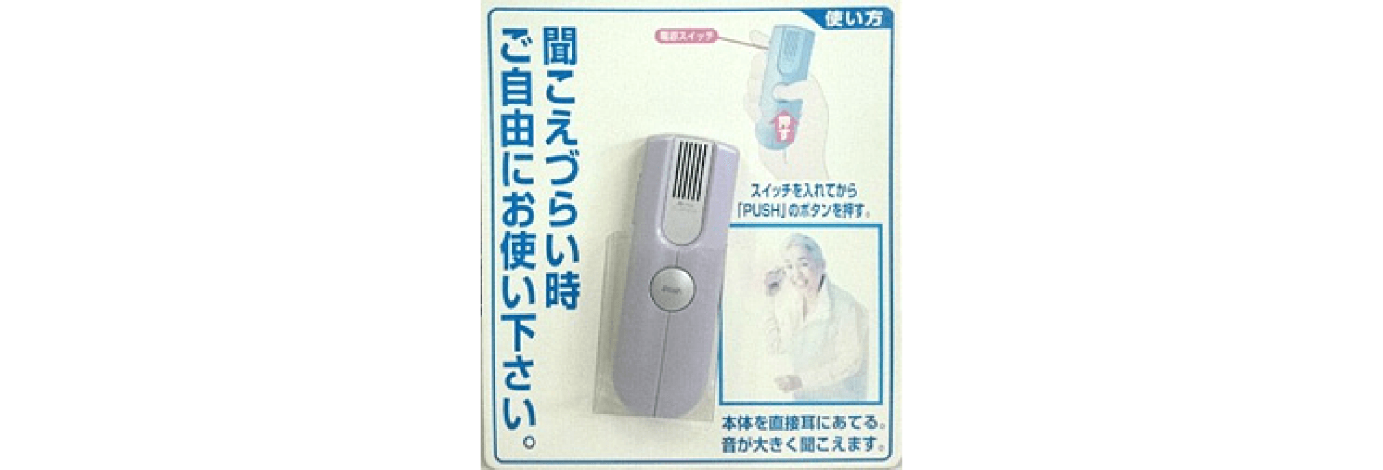 耳の不自由なお客さまにご利用いただけるよう店頭に設置しております。スピーカー部分を耳元に近づけると音が大きく聞こえます。 全営業店に設置しておりますので、お気軽に店頭にお申し付けください。