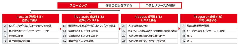 当行グループは、TNFDが推奨する項目の開示を行うため、TNFDが開発した手法であるLEAPアプローチに沿って自然資本への依存・影響などの分析を行っています。
