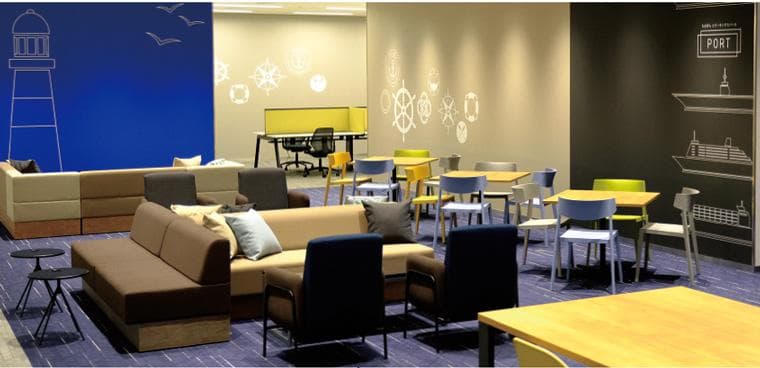 ちばぎんコワーキングスペースPORTには、「コンセントレーションスタイル」「カフェワークスタイル」「ソロワークスタイル」の3つのワークスタイルエリアがあります。